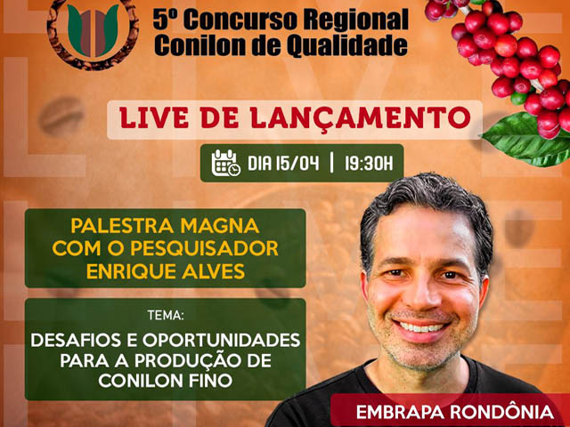 A palestra magna será realizada pelo pesquisador Enrique Alves da Embrapa Rondônia com o tema “Desafios e Oportunidades para a Produção de Café Fino”.