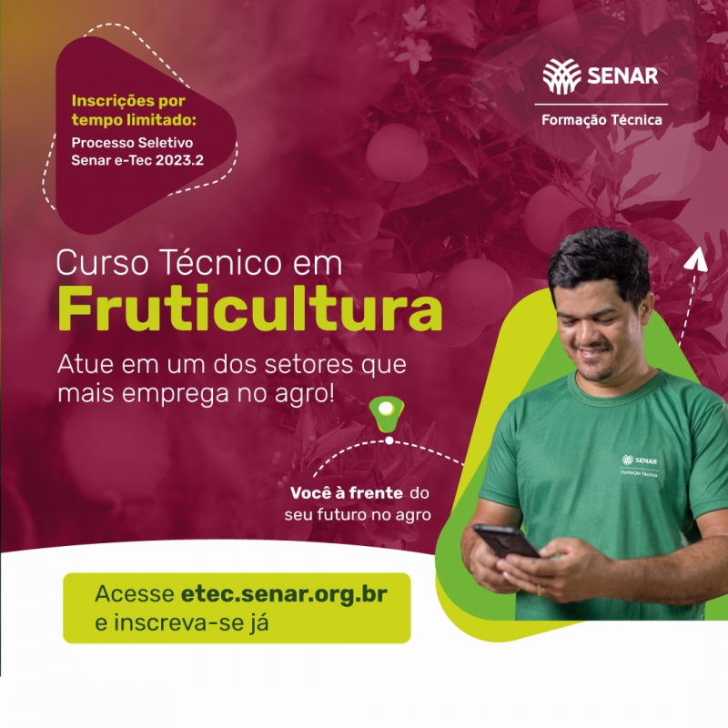 O técnico em Fruticultura formado pelo Senar é um profissional especializado nos processos da cadeia produtiva da fruticultura de acordo com as boas práticas agrícolas, normas técnicas, legislações e necessidades do mercado. Sua atuação não se limita aos processos internos de uma propriedade, podendo trabalhar em escritório, campo, estrada, instalações agrícolas, casa comercial, cooperativas (de crédito e de produção), laboratórios, agroindústria e prestadoras de serviço. Os técnicos atuam em empresas de pequeno, médio e grande porte ou de forma autônoma.