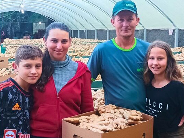 A família Schaeffer, formada pelo casal Leomar e Viviane, e os filhos Wallisson e Tamirys, em Santa Leopoldina, vem se destacando na produção e exportação de gengibre ano após ano. Eles garantem a renda familiar por meio da raiz produzida no pequeno município da região serrana capixaba.